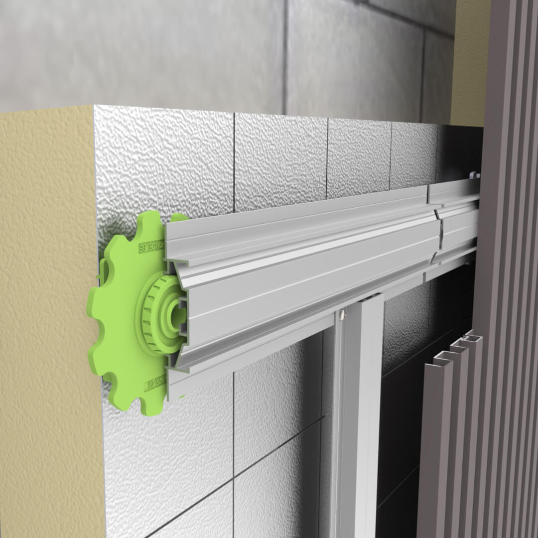 koppelen en er speling is voor uitzetting. Het basisprofiel vormt de dragende ondergrond voor de gevelbekleding.